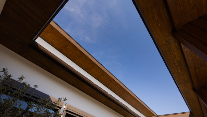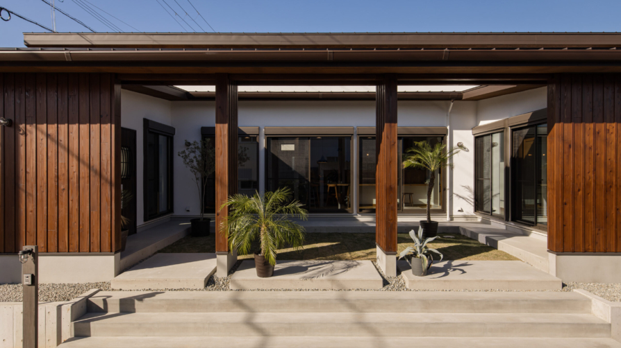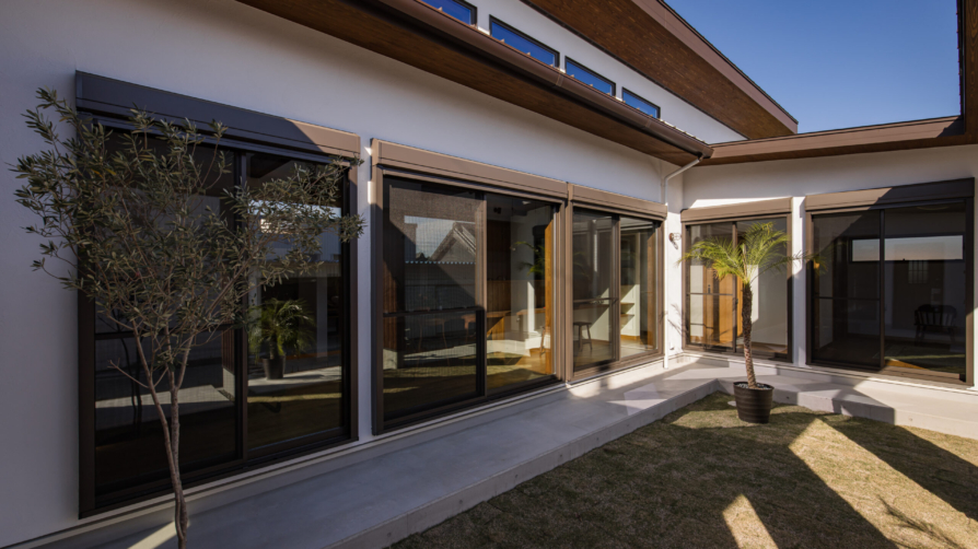 3LDK+畳スペース+書斎+ロの字型屋根、中庭